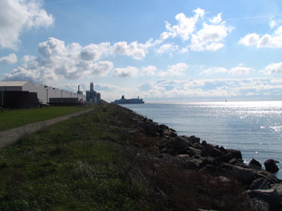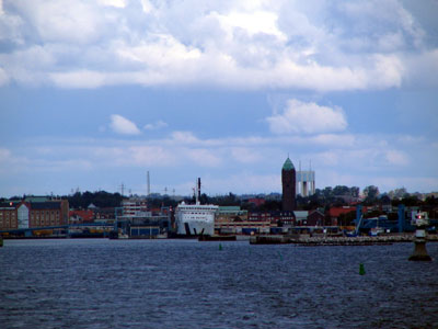 Drei Stunden später der Blick nach vorn, auf den Trelleborger Hafen. |