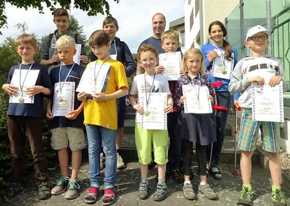 Und der Medaillensegen hätte noch größer sein können, wenn Mattis, der Hannes in nichts nachsteht, nicht krankheitsbedingt nach zwei Runden hätte abbrechen müssen. Gute Besserung, Mattis! Den Erfolg komplettierten Konstantin, der in der u10 Platz 8 von 22 Teilnehmern belegte. Er darf nächstes Jahr noch einmal in der gleichen AK starten. Außerdem erkämpfte sich Artöm als jüngster Spieler in der u12 Platz 7 von 15 Teilnehmern.