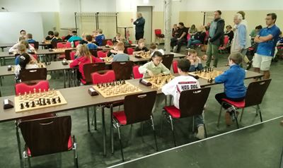 Team Nummer 8 war Think Rochade III, die nur zu zweit waren. Wir einigten uns darauf, dass die sehr jungen Kinder nur an Brett 3 und 4 spielen, die ersten Bretter mit Ersatzspielern der anderen Teams aufgefüllt werden dafür aber jeder mit 4:0 "kampflos" gegen Think Rochade III gewinnt. Eine gute Lösung für alle. Die Kinder konnten alle spielen, keiner musste zugucken.