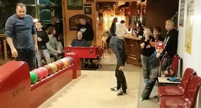 Wir haben wie immer mit dem Nachwuchs um 17 Uhr angefangen und wie üblich war es ein buntes Gewusel auf den Bahnen mit gut 15 Kindern und einigen Papas. Die Altersspanne lag beim Nachwuchs zwischen 8-15 Jahren. Halbwegs altersgerecht haben wir uns auf drei Bahnen aufgeteilt. Dann haben wir zwei Stunden lang unseren Spaß gehabt. Und etwas besonderes gab es auch. Zum ersten Mal schaffte ein Nachwuchsspieler mehr Punkte, als ich. Aber Immanuel hatte beim Neujahrsturnier ja auch heimlich geübt. ;-)
